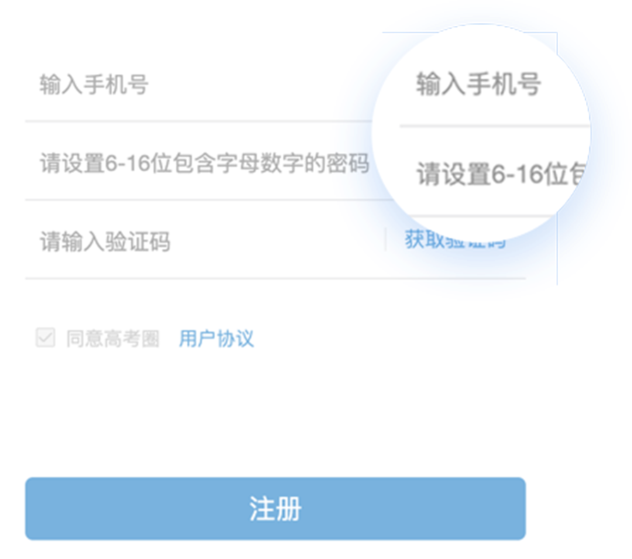 (2)进入注册页面后,输入手机号,在下方设置6-16位密码,同时包含字母以及数字(
