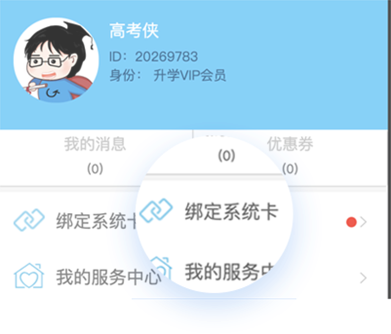 此处以升学卡做示范,其他卡片卡号密码也在背面哦